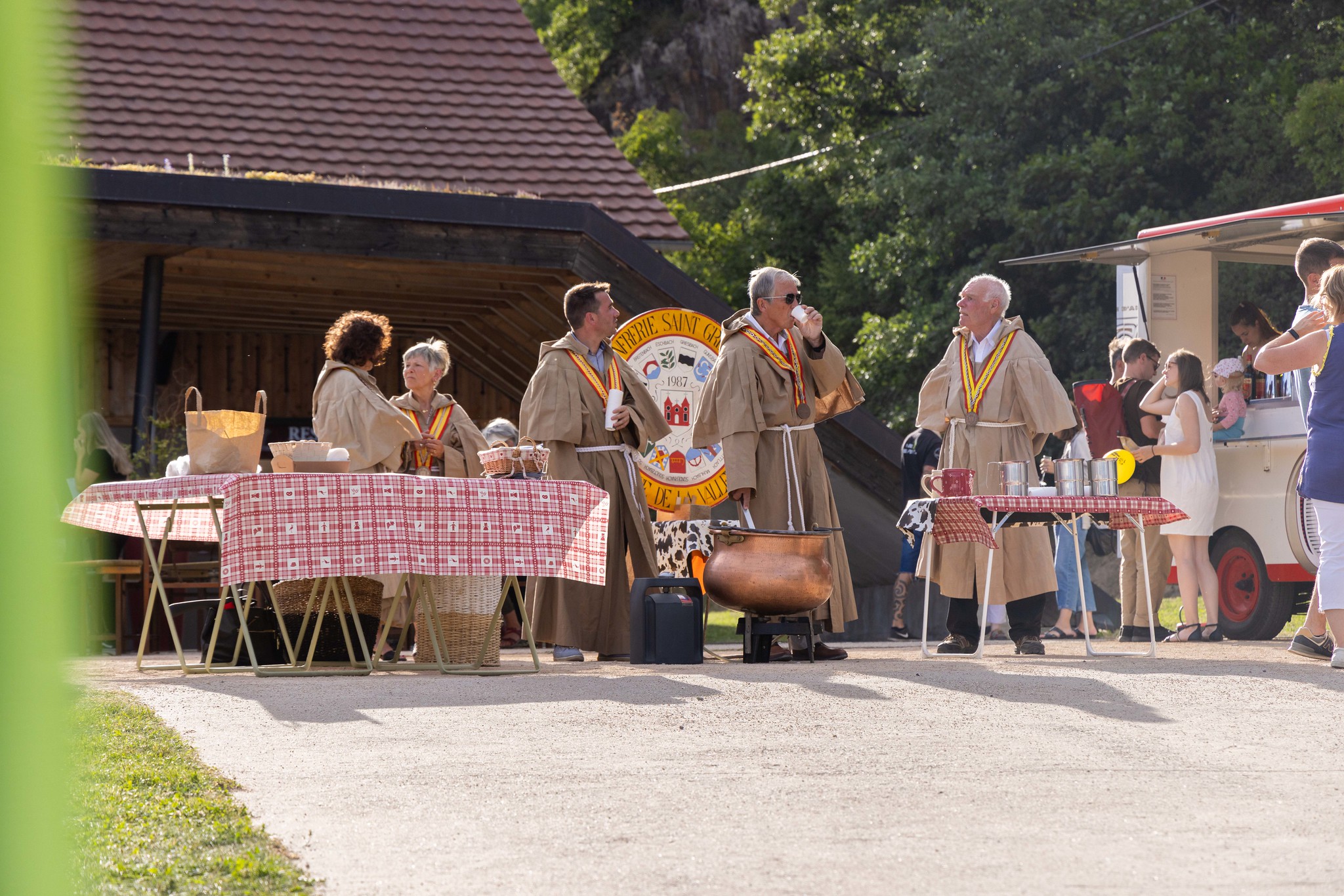 Plus de 450 membres en portent fièrement la robe, inspirée de celle des moines bénédictins de l’ancienne abbaye de Munster, berceau historique du fromage. Une façon d’honorer la tradition… tout en la faisant vivre, avec générosité et bonne humeur.