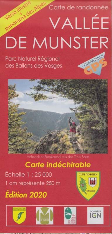 Cette carte IGN au 1:25000e vous permet de randonner dans toute la vallée, de Turckheim au Lac de Longemer, du Lac Blanc à Rouffach. Plus besoin de 4 cartes pour arpenter nos 460 km de sentiers balisés ! Au dos figure un guide touristique avec les sites remarquables, la flore et la faune de notre vallée.