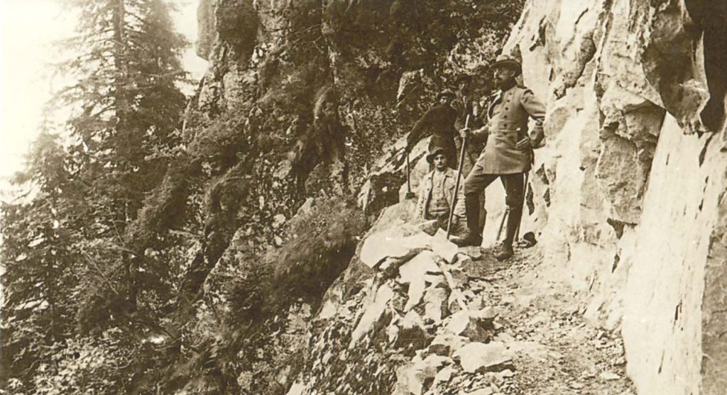 Créateur du Sentier des roches, inauguré le 6 août 1911, que l’on appellera aussi « Strohmeyerpfad ». A l’époque on avait été surpris par la témérité du projet, et on était d’avis alors que plusieurs années seraient nécessaires pour surmonter toutes les difficultés que présentait son tracé. Mais grâce à l’engagement infatigable du garde forestier général et au soutien important apporté par M. André HARTMANN, les travaux purent avancer très vite. L’entrepreneur A. SCANDELLA de Stosswihr fit de son mieux pour réaliser les travaux. Les balustrades en fer furent installés dans ce terrain difficile par le maître forgeron SCHWENCK de Stosswihr. Heureusement il n’y eut pas d’accidents à déplorer, hormis la chute sans gravité d’un ouvrier italien vers la fin des travaux.