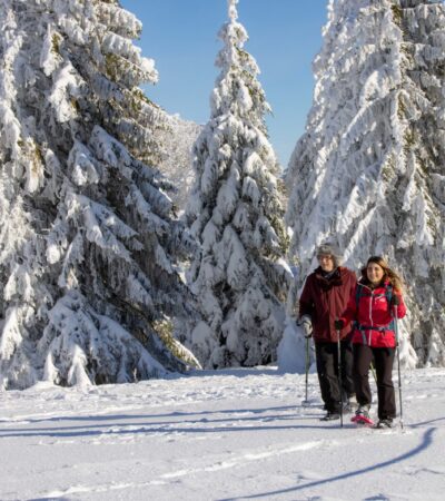 Grâce à une variété d’itinéraires balisés, la randonnée en raquettes peut se pratiquer à votre rythme, sans guide.