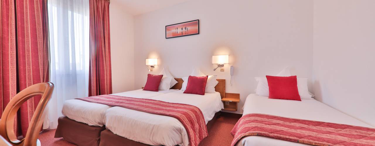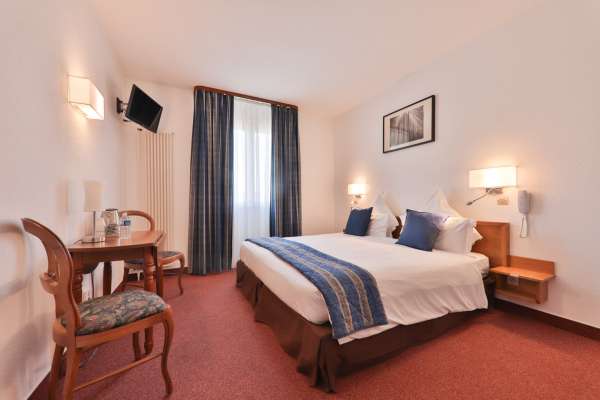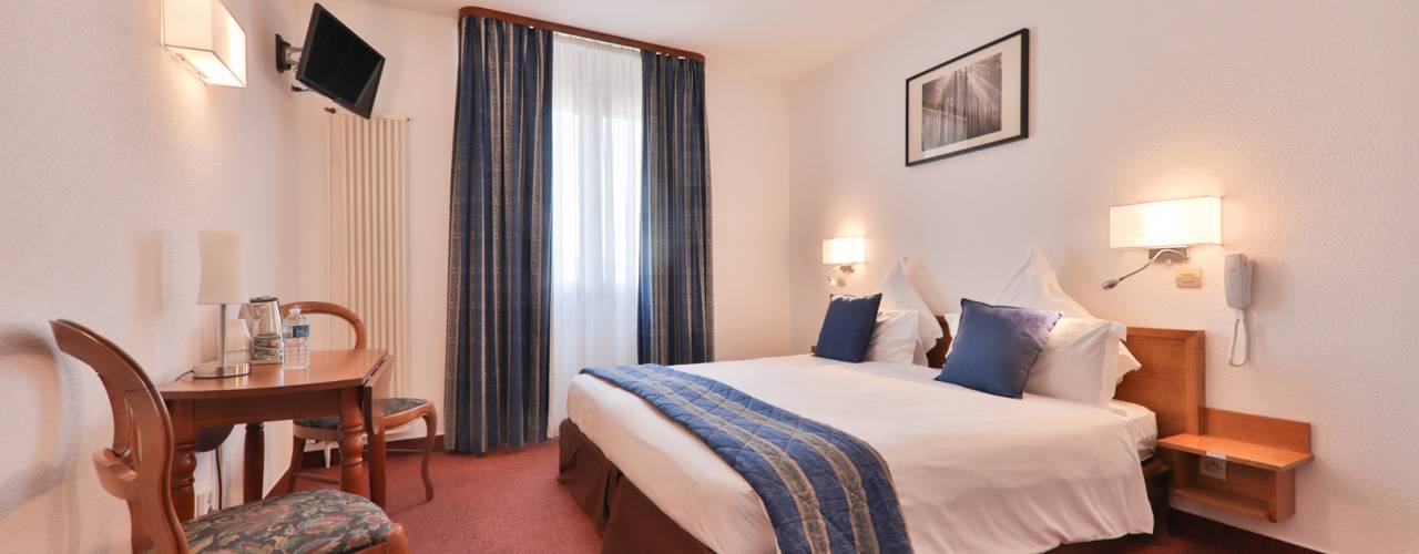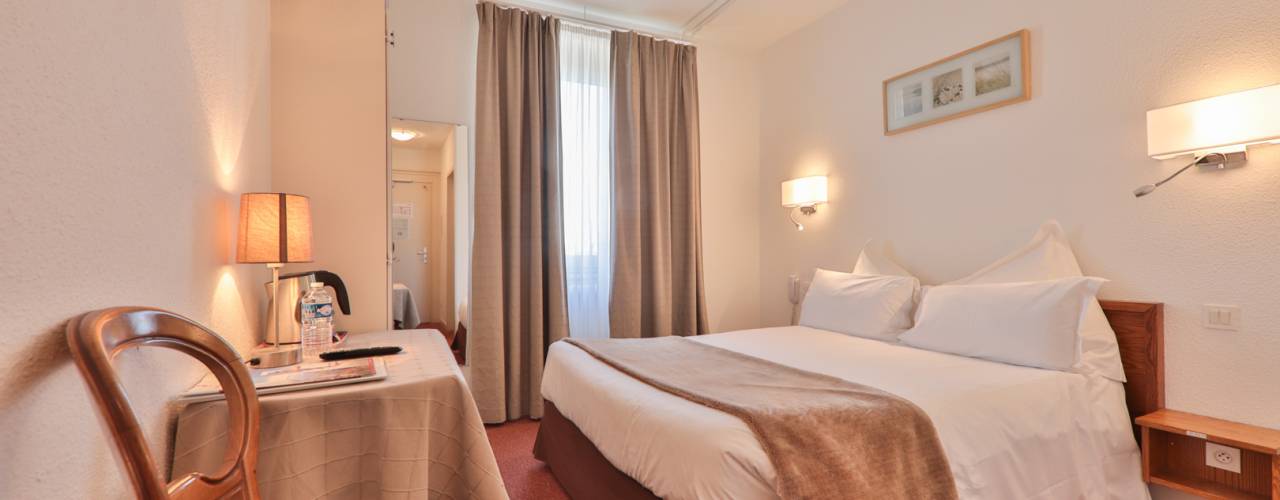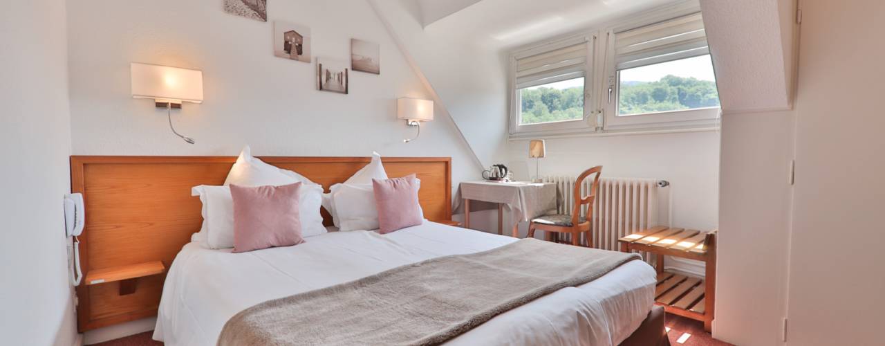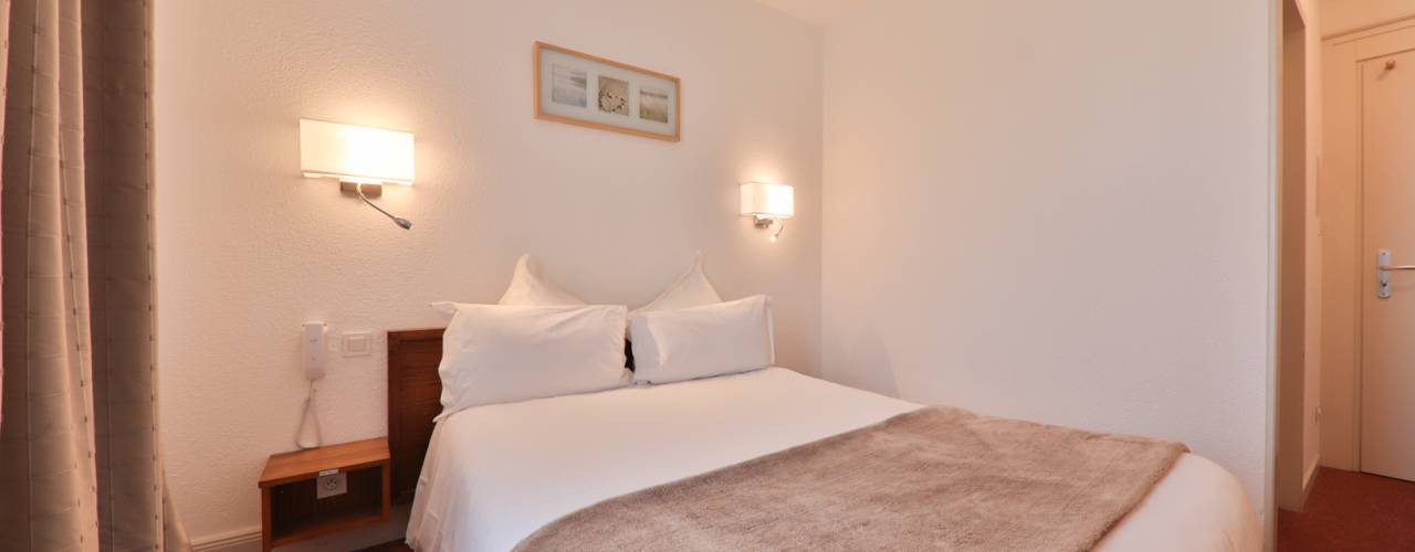 Nos chambres offrent tout le confort souhaité : spacieuses ou plus petites, chambre grand lit deux personnes, grand lit une personne et lits séparés.
