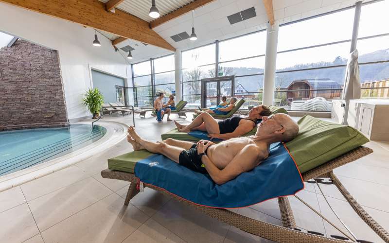 Délassez-vous dans le hammam, le sauna, le sanarium et bains bouillonnants intérieurs et extérieurs.