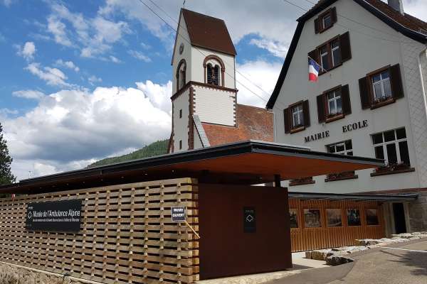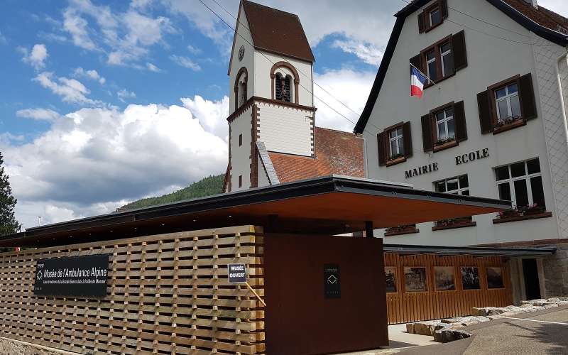 Mittlach, seul village de la vallée de Munster redevenu et resté français dès le 21 avril 1915 devient une base française à quelques kilomètres du front. Du 15 au 21 juin 1915, la Bataille de Metzeral ravage tout le fond de la vallée avant que le front ne se fixe entre les communes de Metzeral et Muhlbach. En juillet 1915, la mairie-école de la commune est transformée en poste de secours, après un renforcement des murs de la cave. L’Ambulance Alpine accueille les blessés tant militaires que civils et sert d’outil de propagande pour le service de santé des armées. Malgré la baisse d’intensité des combats, elle servira durant toute la guerre. Aujourd’hui restaurée, elle s’accompagne d’un centre d’interprétation et d’un sentier de mémoire sur la thématique de l’impact de la guerre sur l’Humain, combattant ou non.