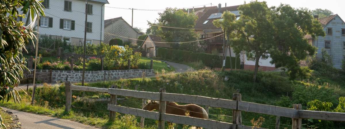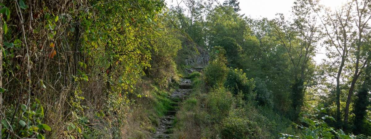De la place du Marché descendre vers le feu tricolore, passer à gauche de l'église catholique puis traverser le pont de la Fecht de la Petite Vallée pour rejoindre le centre de secours des pompiers et le départ du circuit du Narrenstein.