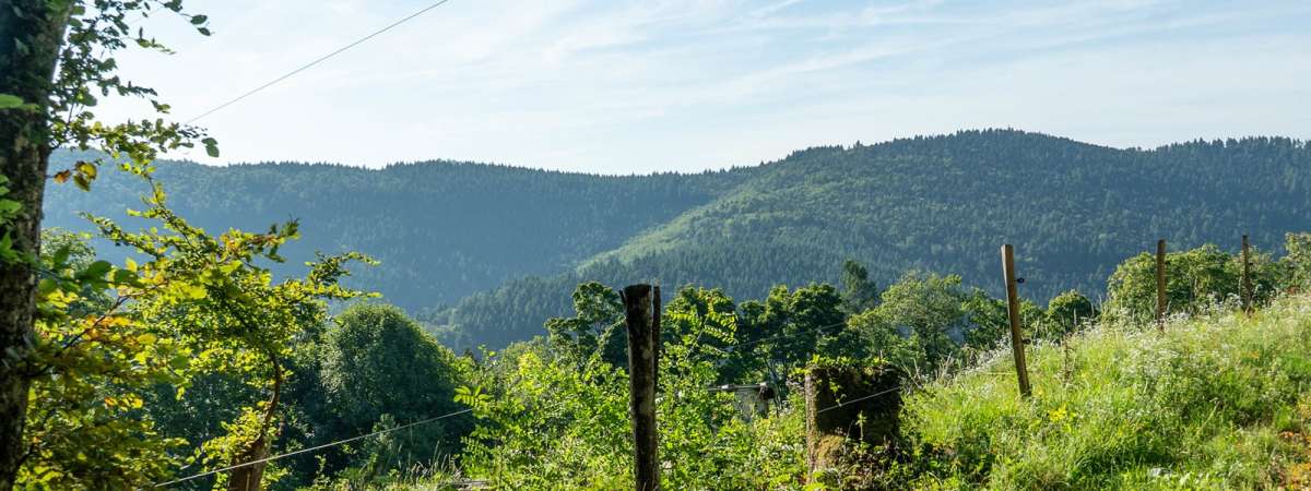 À la terrasse Napoléon, une table et des bancs invitent à une pause. Poursuivre ensuite sur le chemin forestier. Au-dessus de la ferme du Geisbach, magnifique vue sur Haslach, Hohrodberg, le Barrenkopf, le Tanet, la Schlucht et le Petit Hohneck.