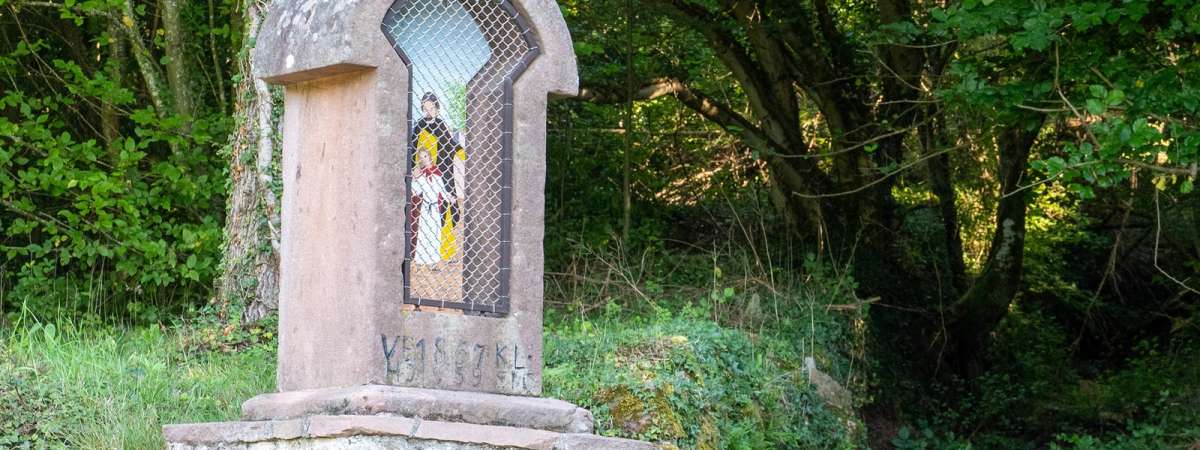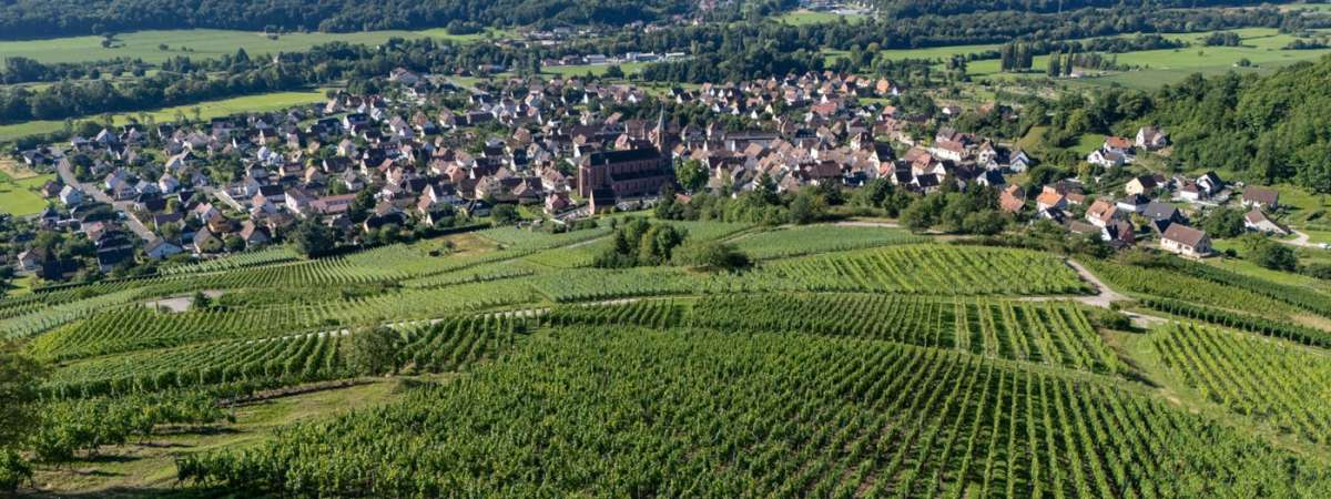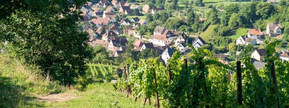 Franchissez la porte fortifiée, puis remontez la Grand’rue. À la sortie du village, continuez sur le chemin des oratoires qui s'enfonce dans le vallon en amont. Après environ 400 mètres, prenez à droite pour pénétrer dans une zone boisée. Le sentier, après un virage à droite, devient plus plat et vous conduit jusqu’à un portail grillagé (veillez à le refermer après votre passage). Ce dernier donne accès aux vignobles, notamment aux coteaux appelés Herrenreben. Le retour vers le village se fait par les chemins empruntés par les vignerons pour accéder à leurs parcelles.